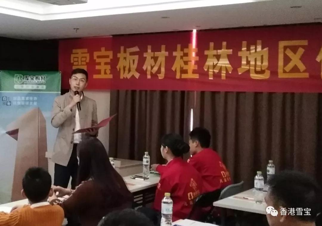 ▲雪寶板材桂林地區(qū)優(yōu)秀經(jīng)銷(xiāo)商培訓(xùn)會(huì)活動(dòng)現(xiàn)場(chǎng),培訓(xùn)講師杜老師深入介紹雪寶品牌發(fā)展歷程和講解雪寶品牌系列產(chǎn)品。